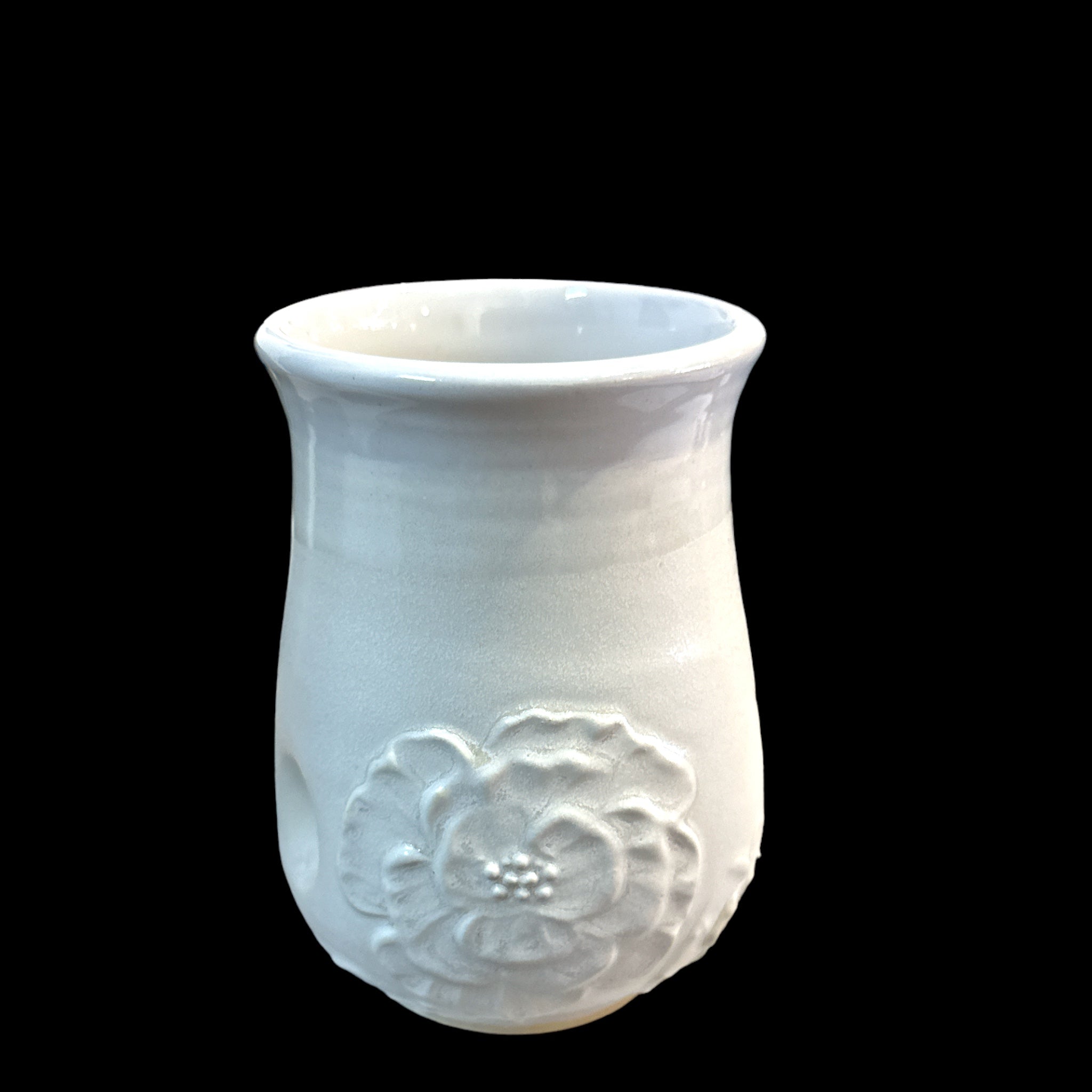 Original White glazed designed tumblers by Sandra Lee.