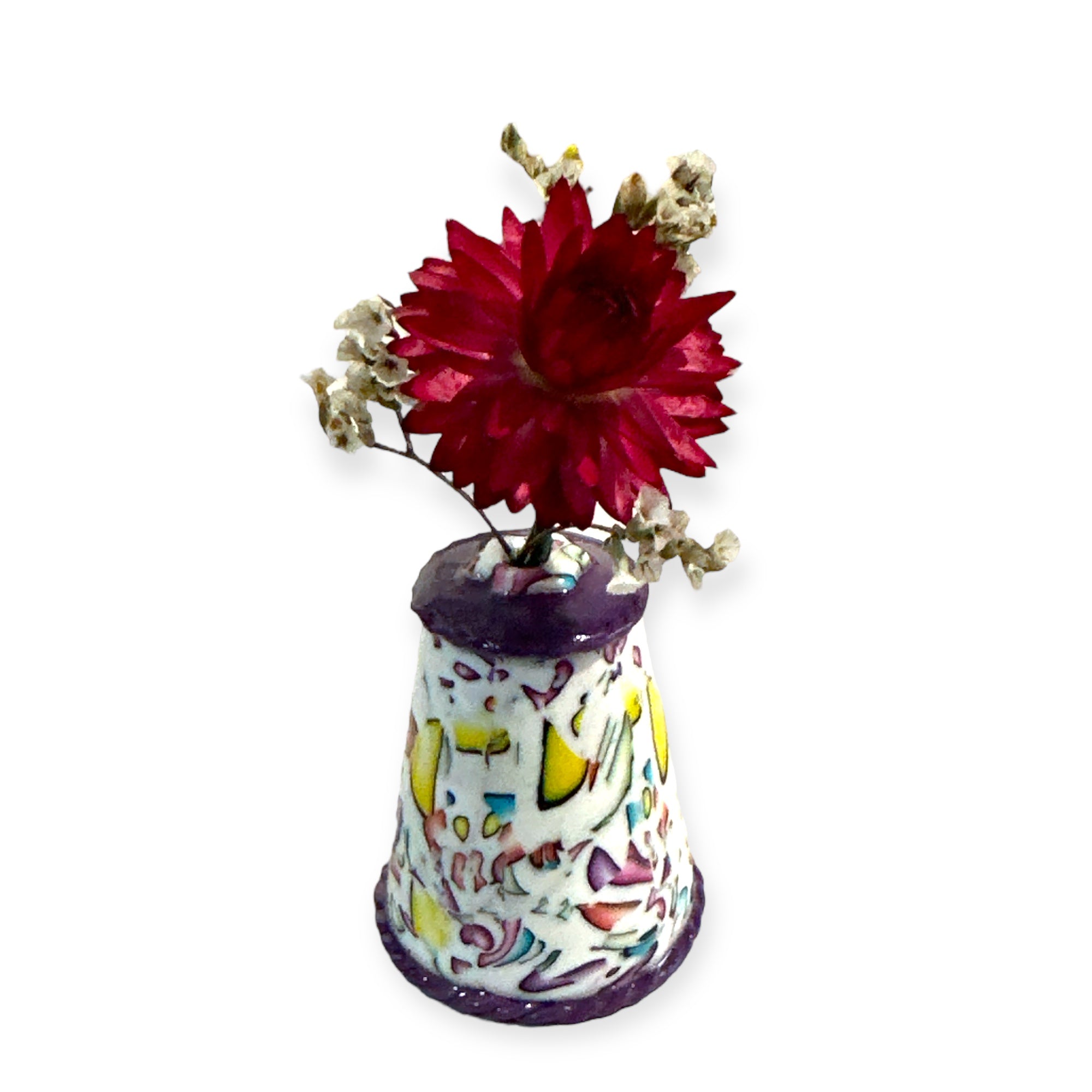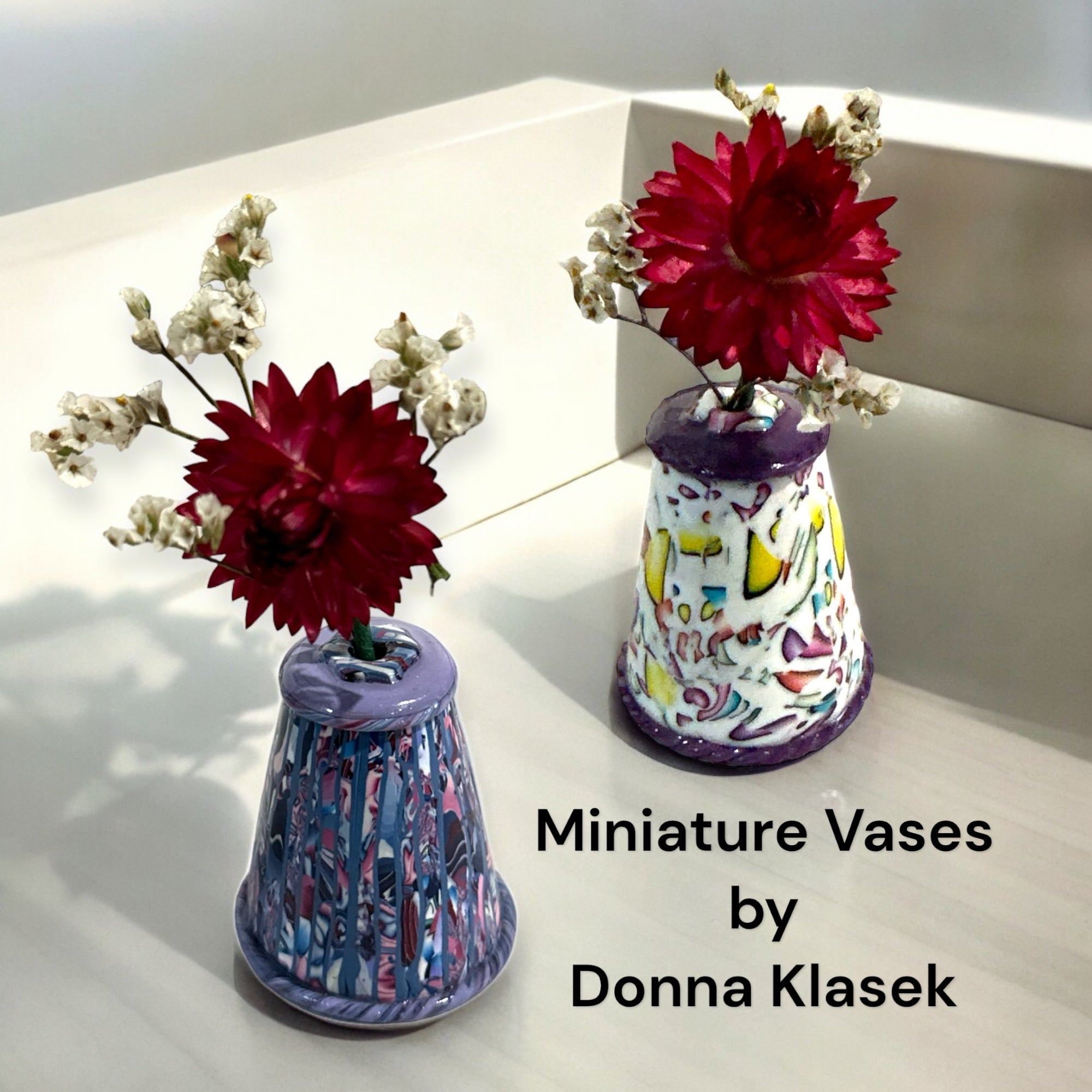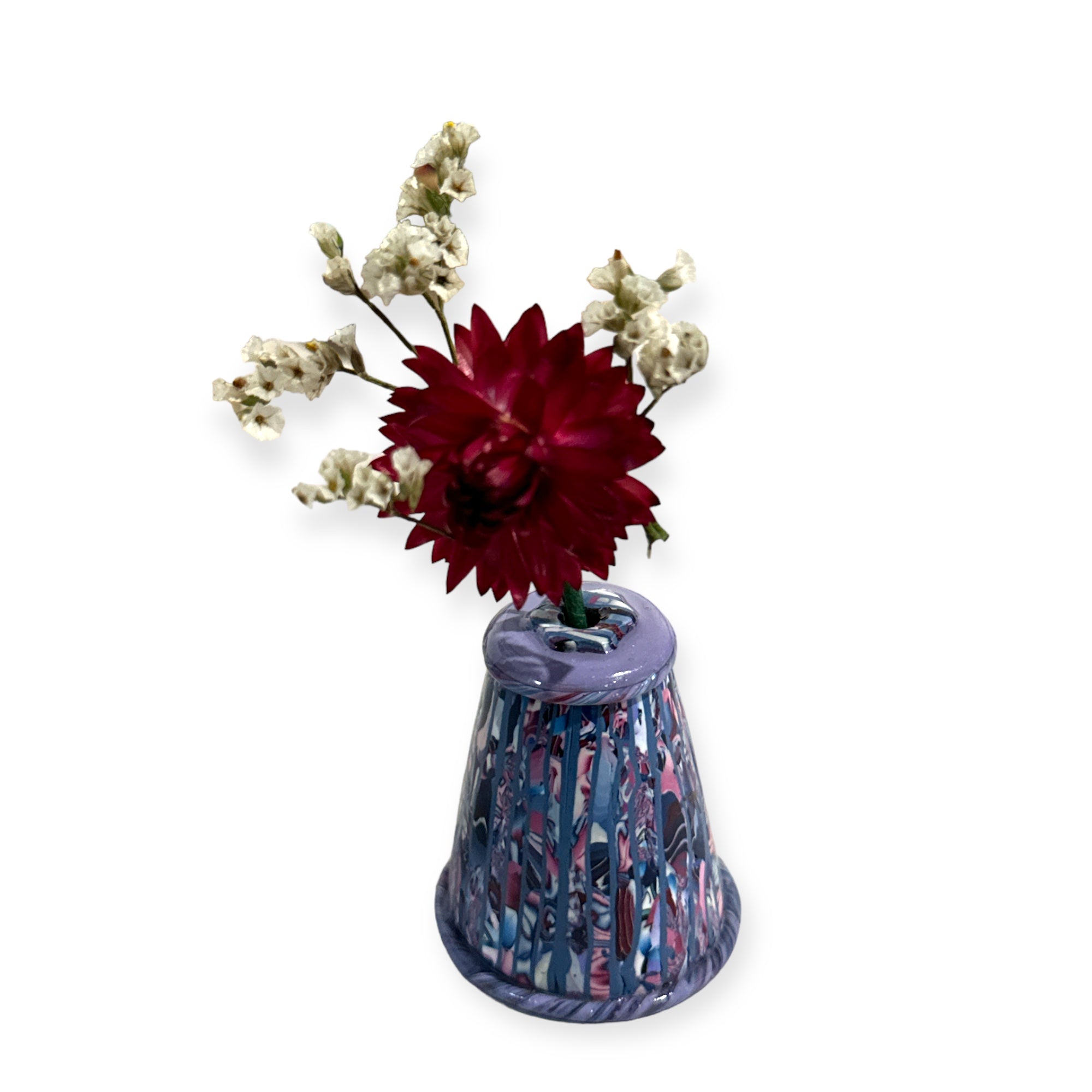Donna has used her fine skills with polymer clay to create a truly unique & beautiful little vases. She has created many beautiful designs with different colours and patterns.
