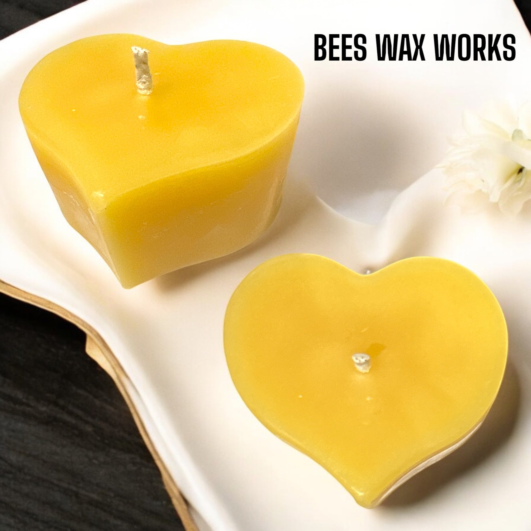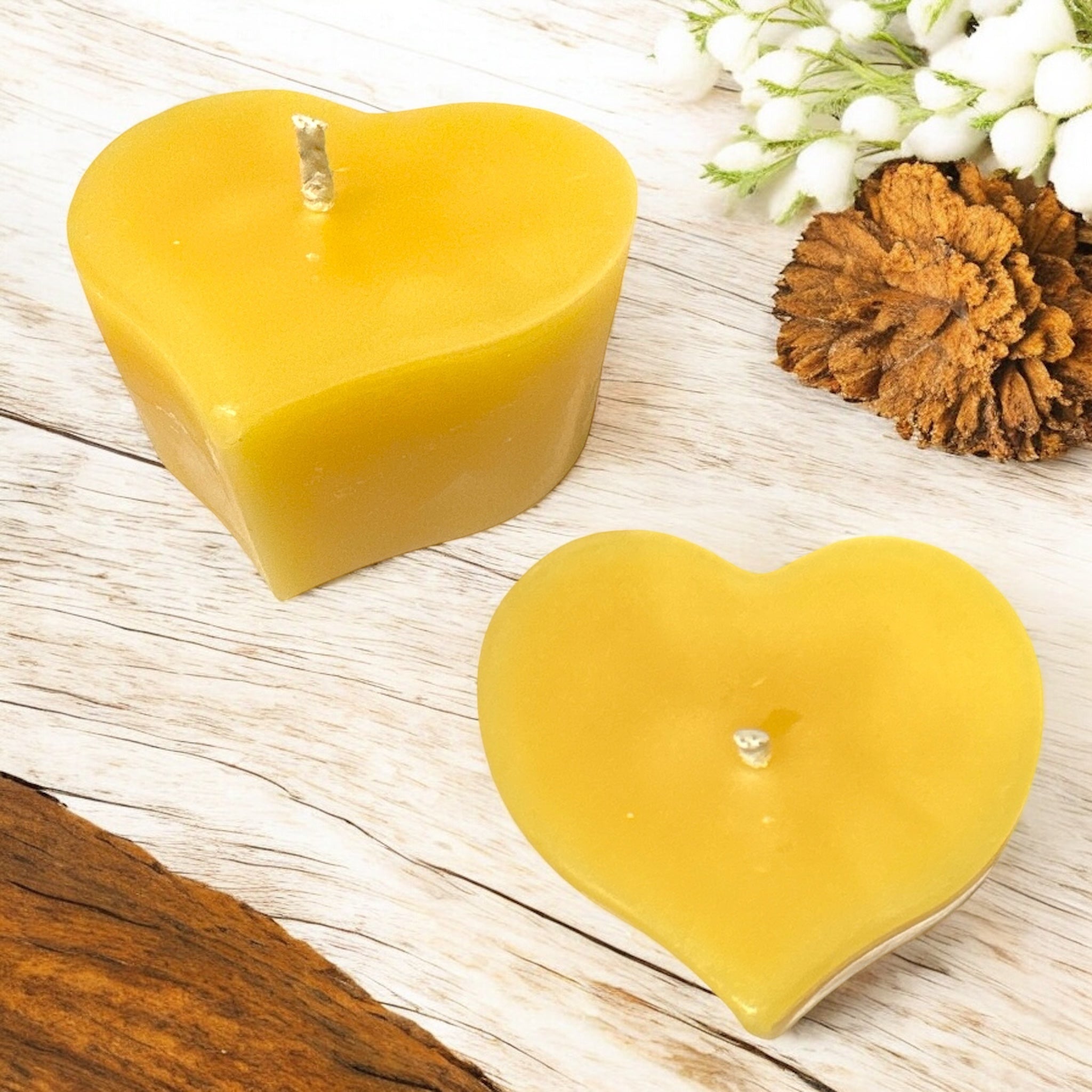 Sweet Heart Candle  Measuring 4cm x 6.5cm x 5cm, these candles are the perfect size to scatter around your home. With a cotton wick, these candles burn cleanly and evenly, providing up to 5-7 hours of warm, natural light and a sweet, honey-like scent.