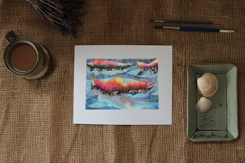 This is a digital print using high quality ink of a watercolour original. Printed on 100lb Finch Opaque paper.