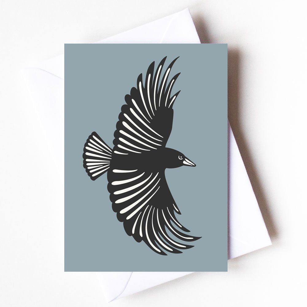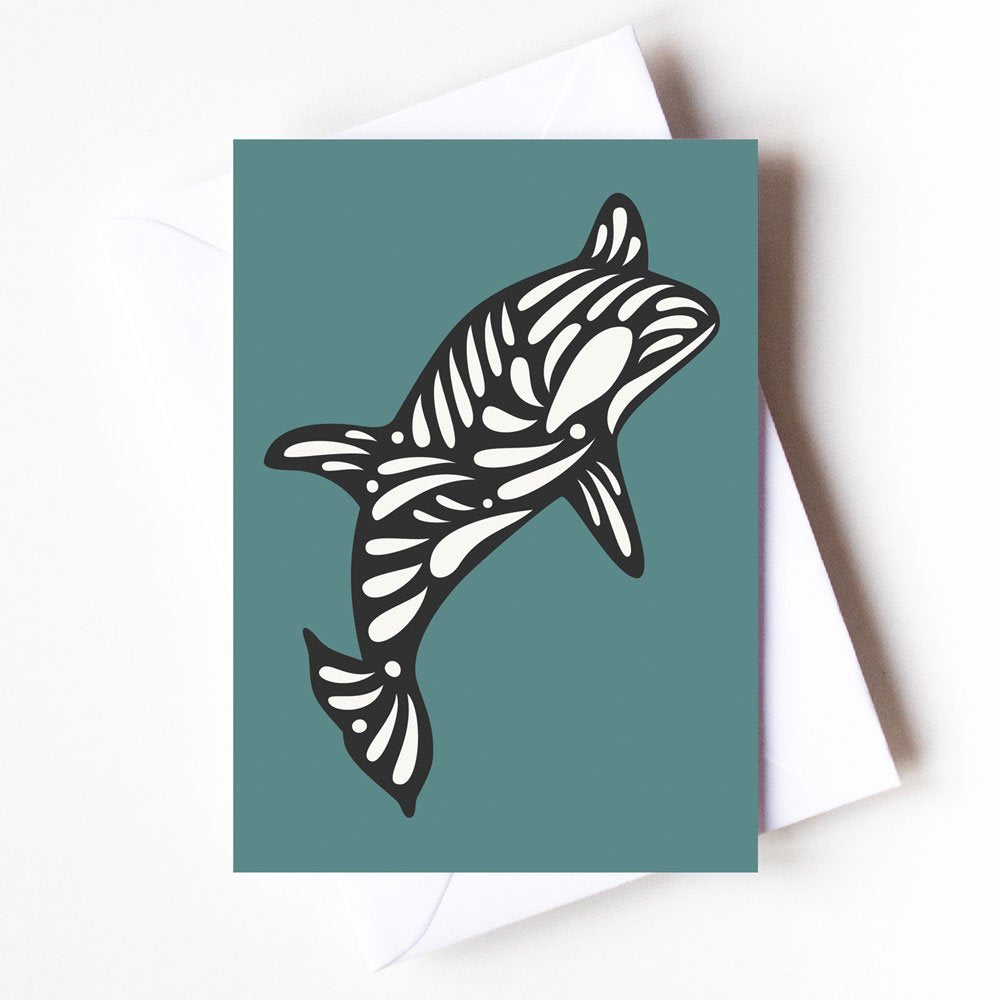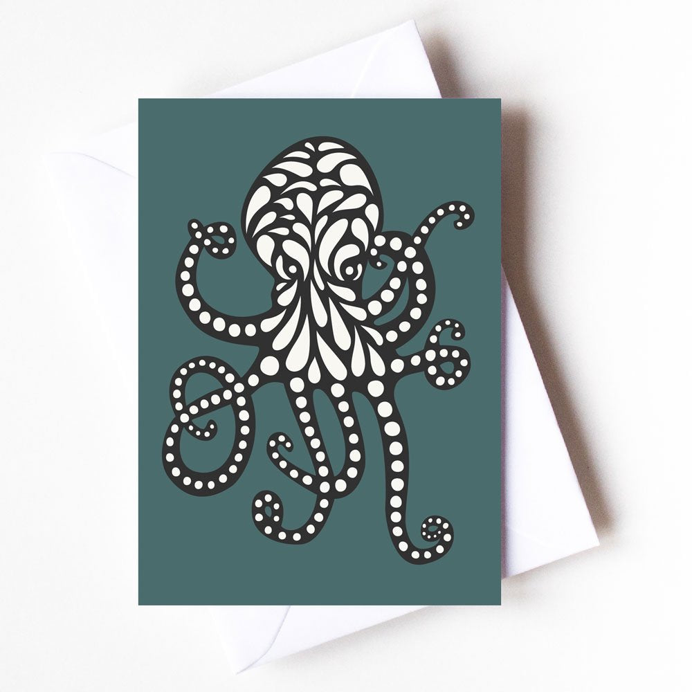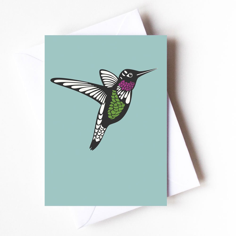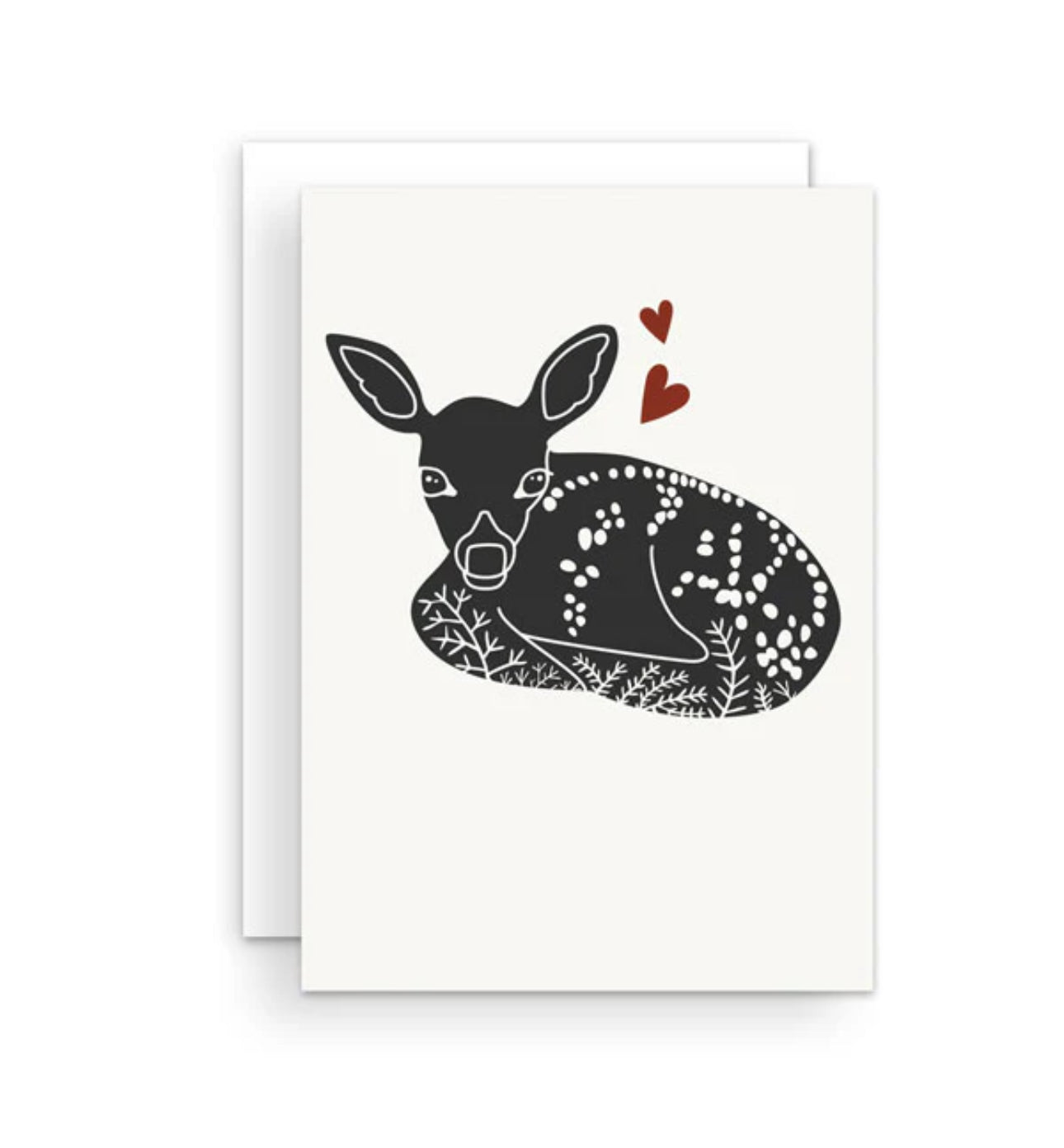 4.13" x 5.83" greeting card with white envelope. Printed on thick, satin finish paper, which is uncoated inside for writing on. Blank inside.