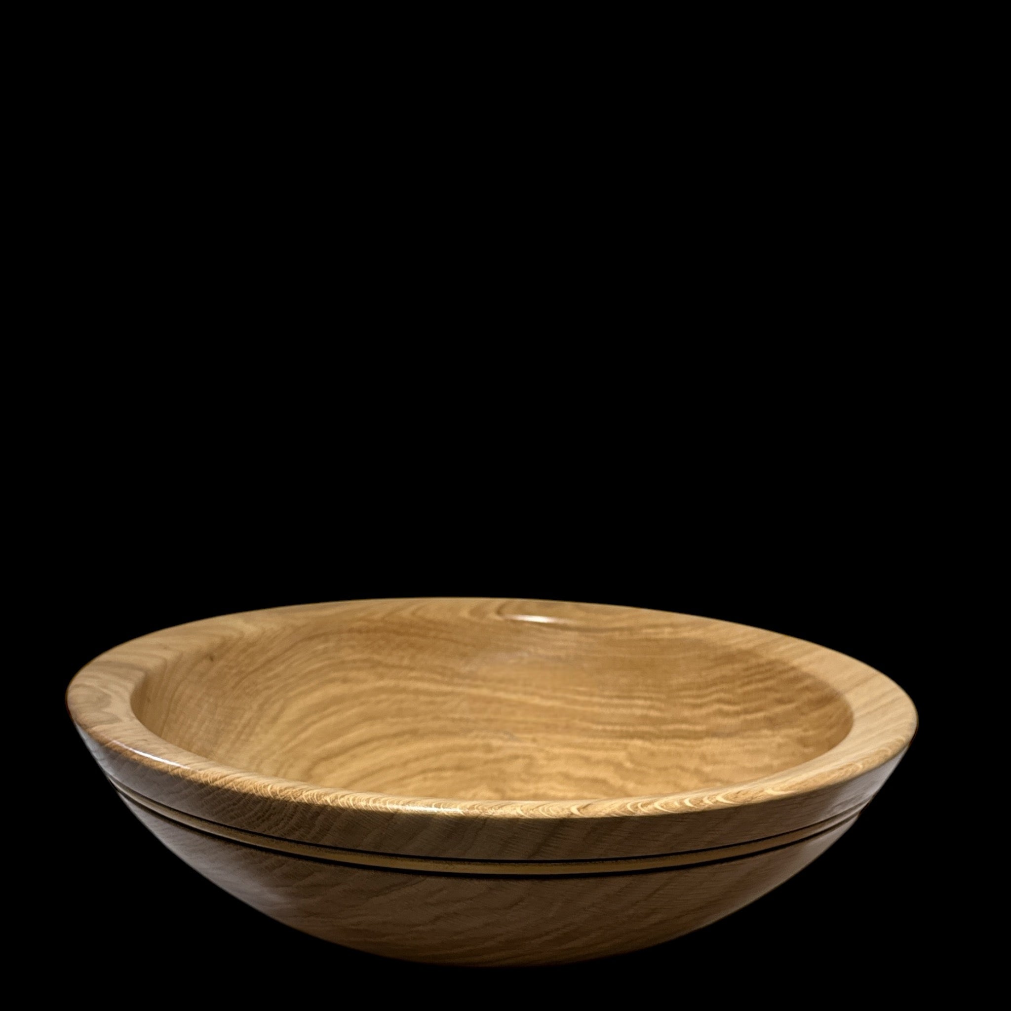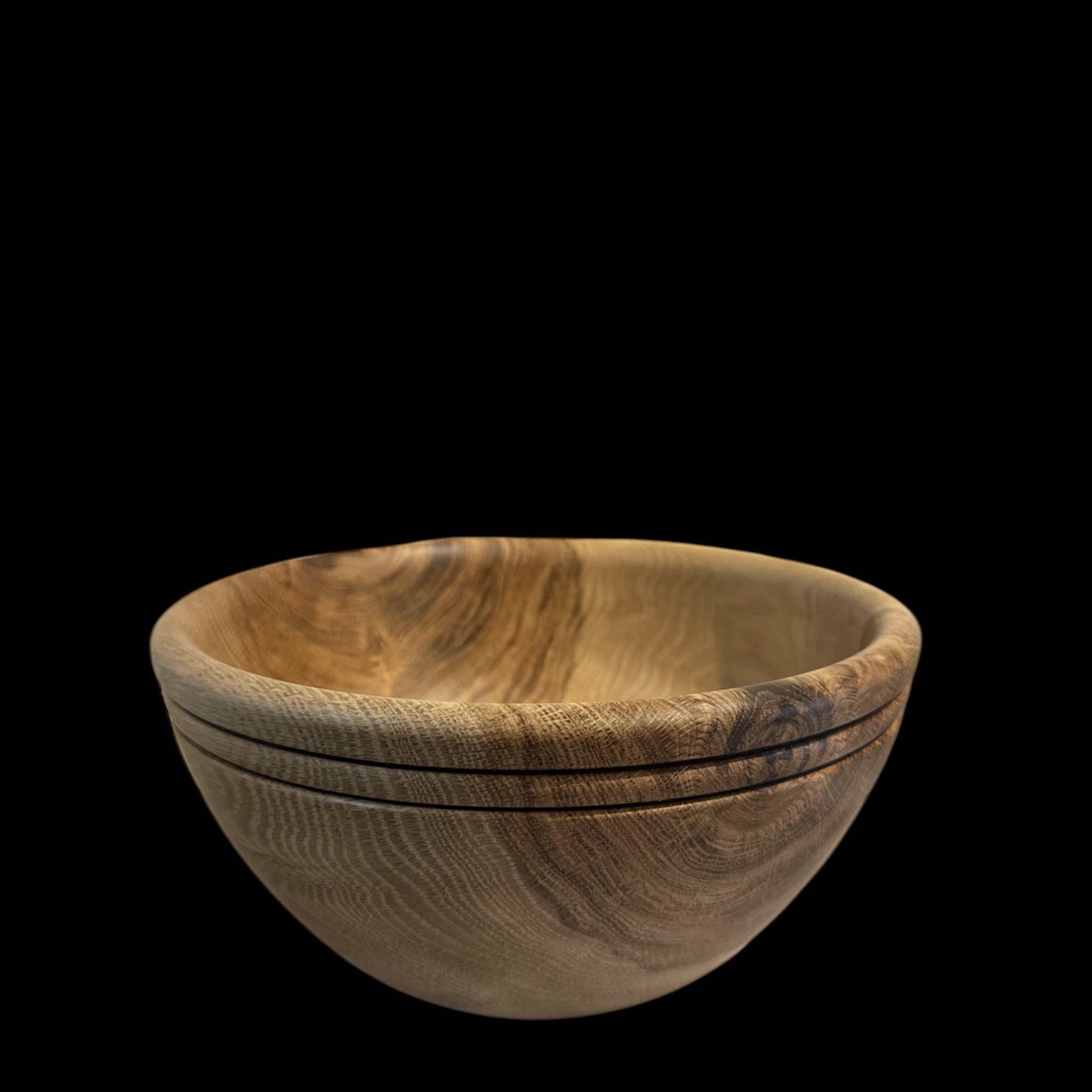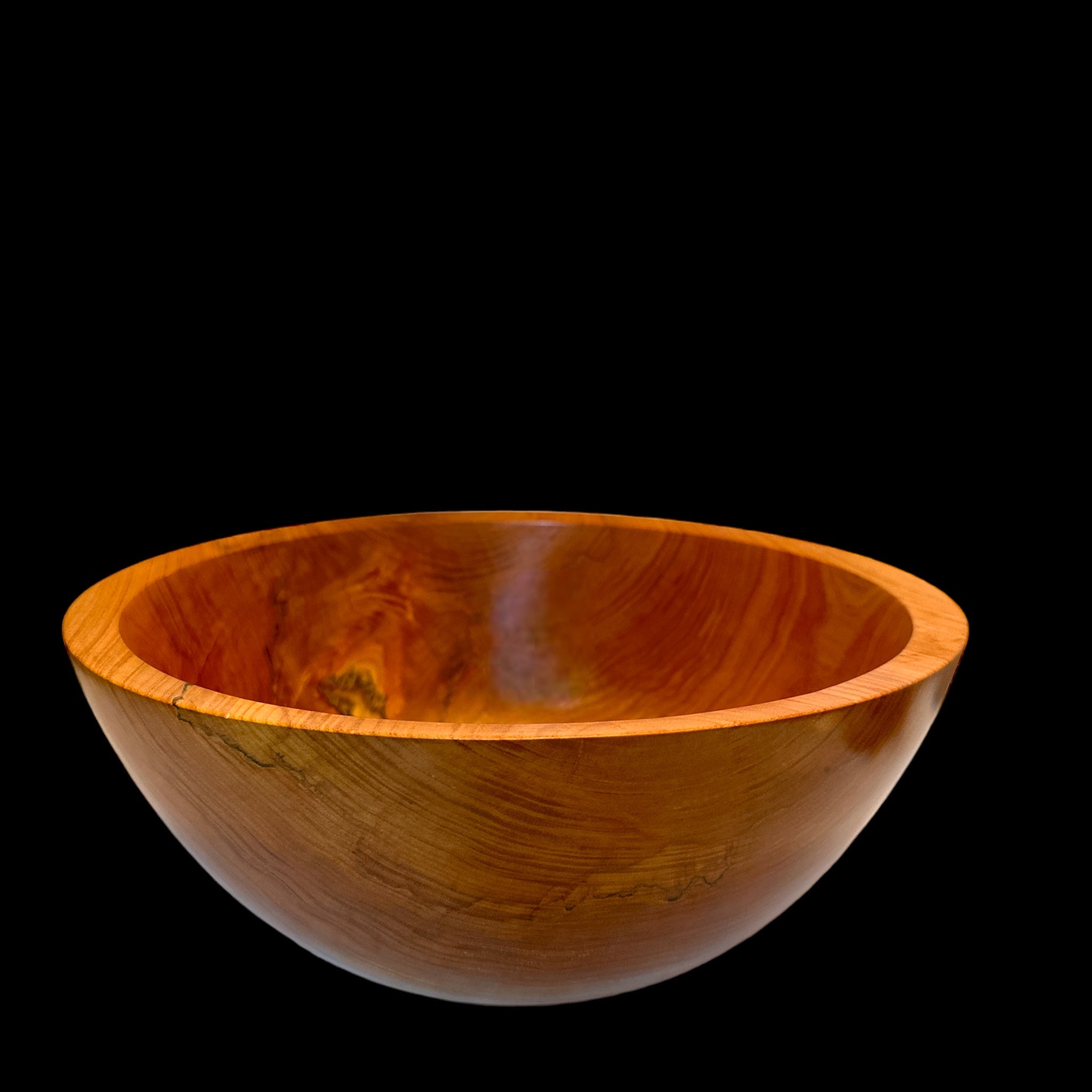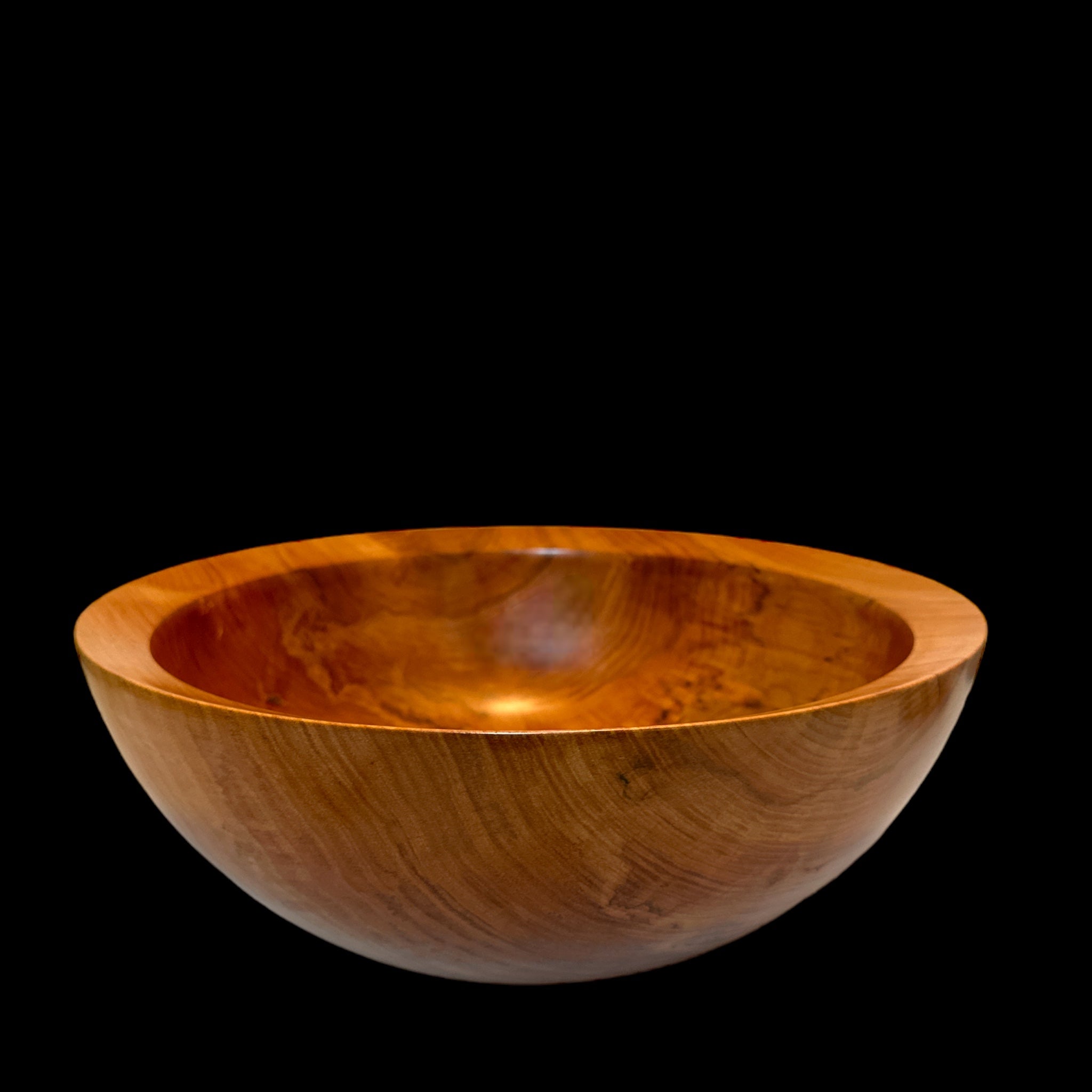 He works with all natural wood from the island such as oak, maple, locust,Arbutus, cherry,etc. Someone has a downed tree or wants their apple tree removed, Harvey is there to pick it up and turn it on his lathe. Before he can turn it he has to run it through a bandsaw and carve out something to work with. Then the wood goes into a drying room for up to one year.