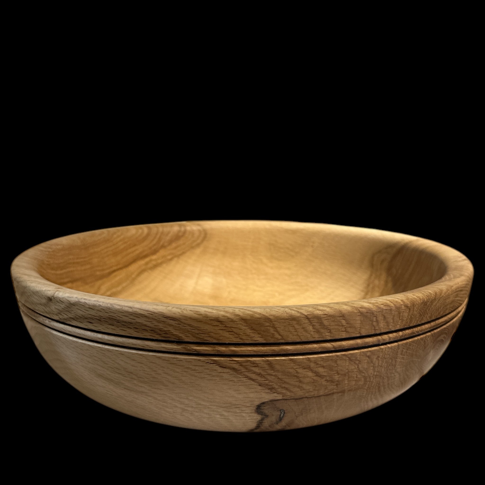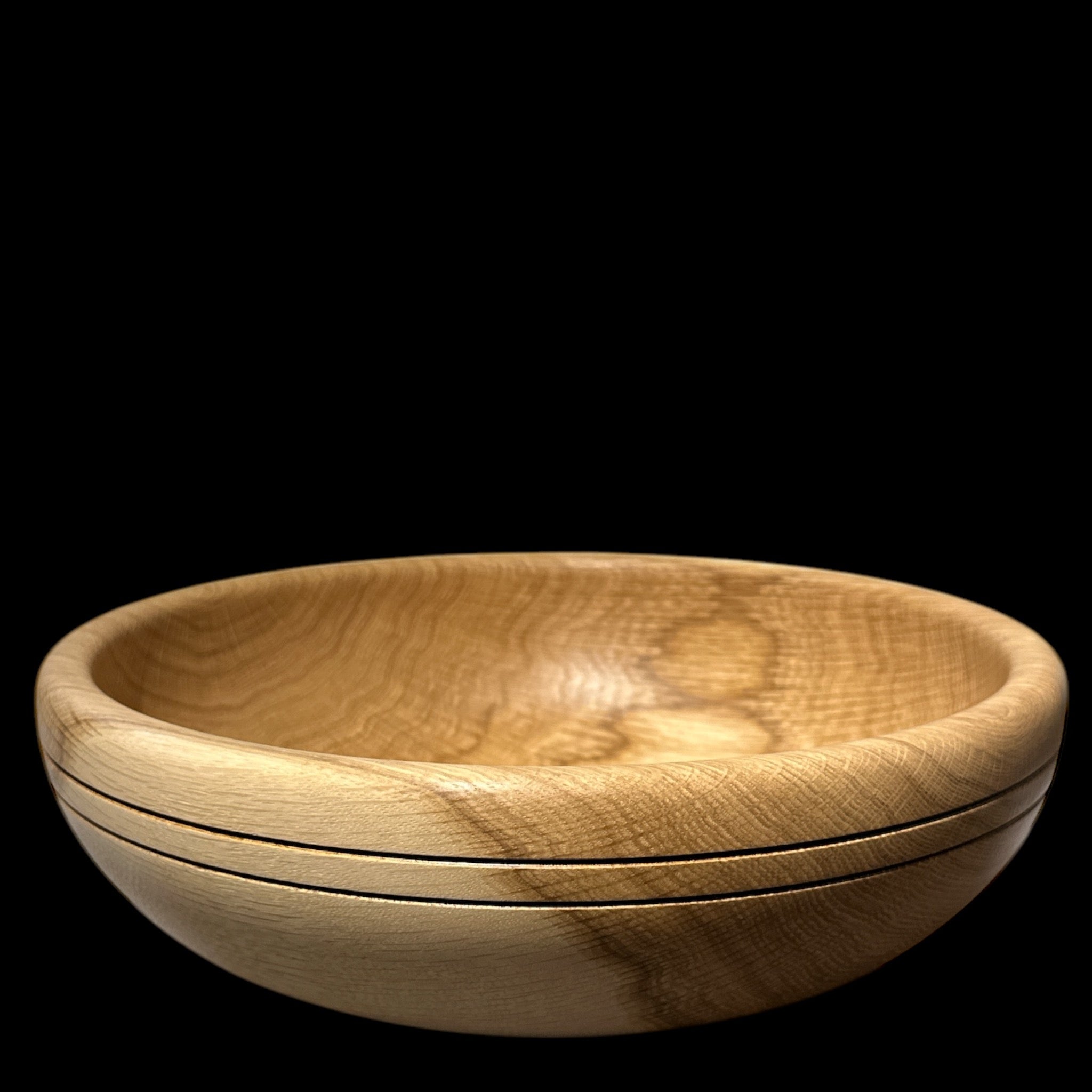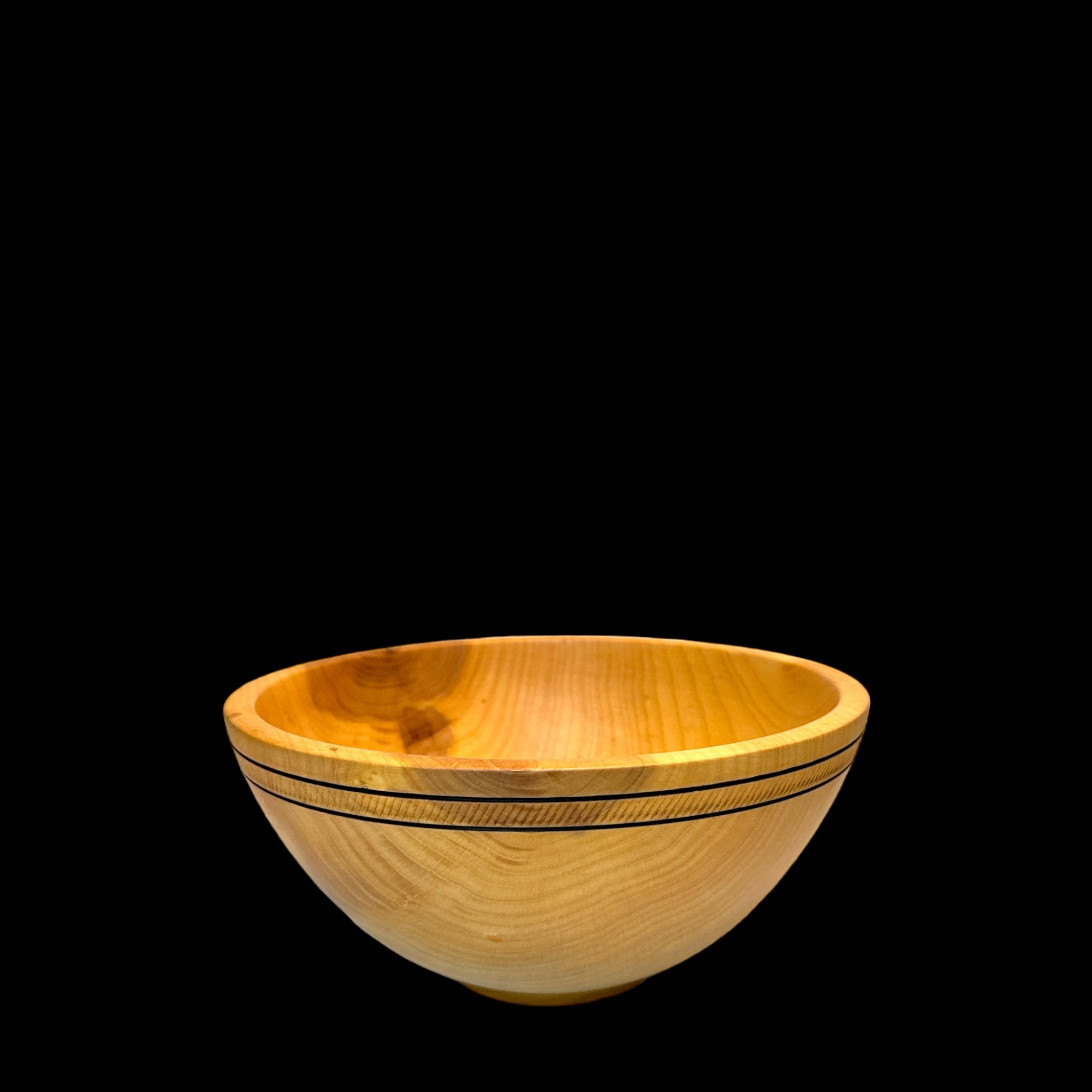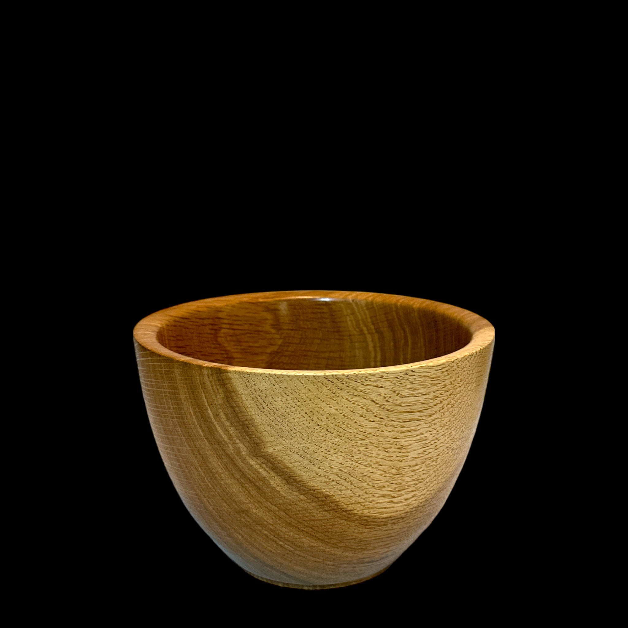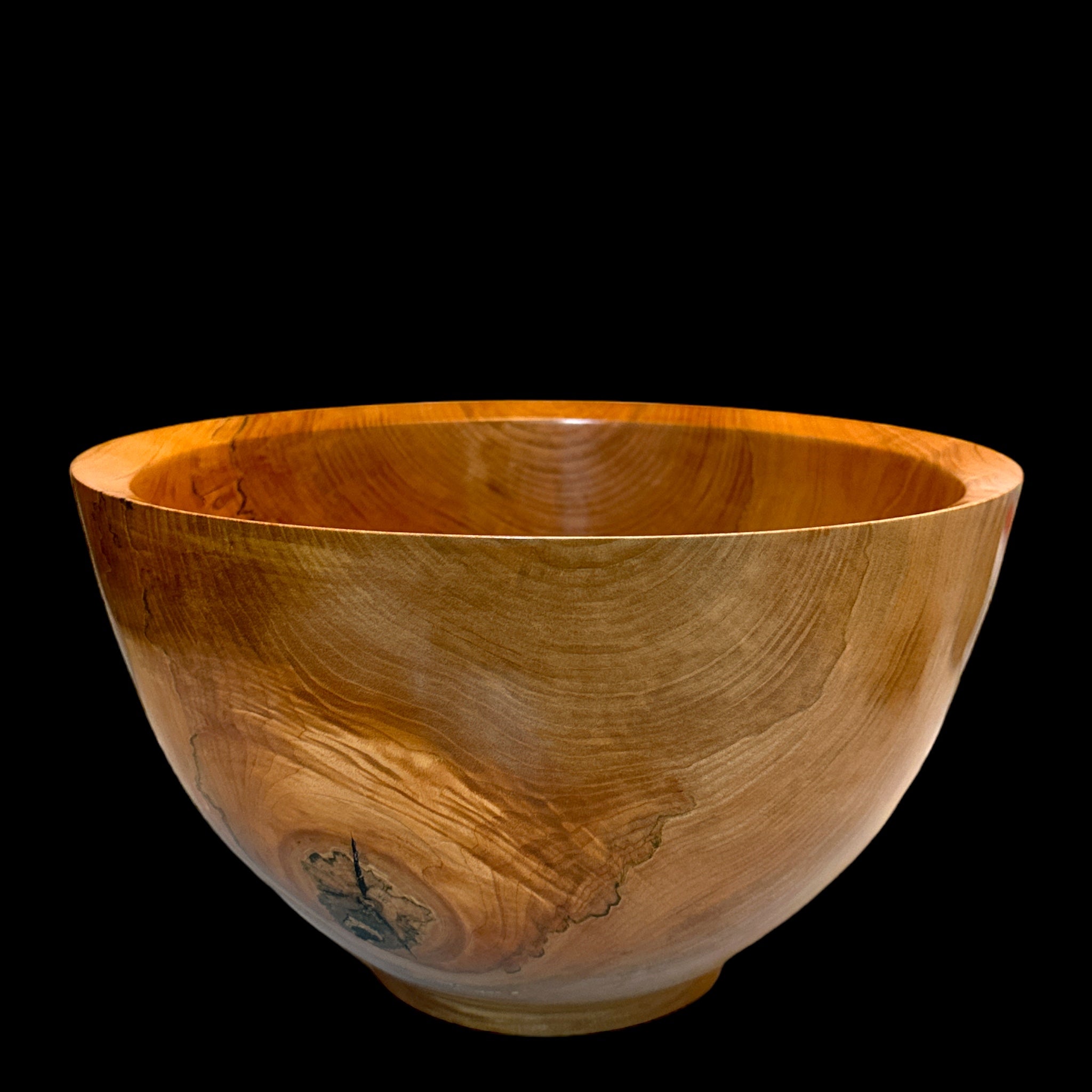 He works with all natural wood from the island such as oak, maple, locust,Arbutus, cherry,etc. Someone has a downed tree or wants their apple tree removed, Harvey is there to pick it up and turn it on his lathe. Before he can turn it he has to run it through a bandsaw and carve out something to work with. Then the wood goes into a drying room for up to one year.