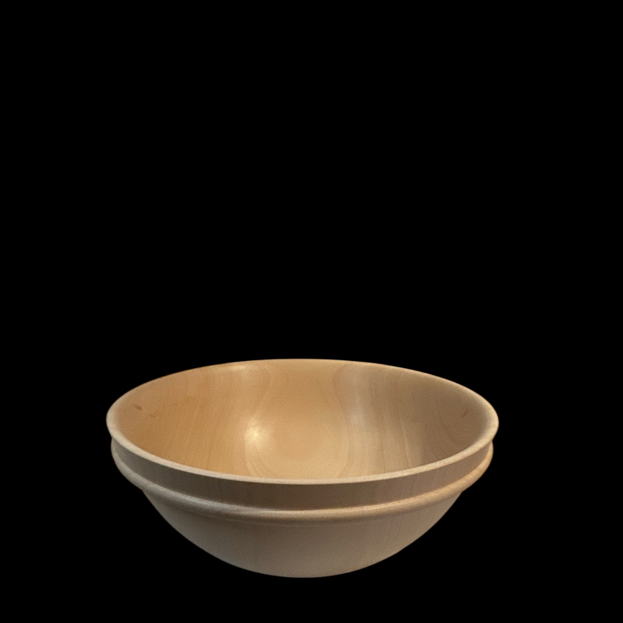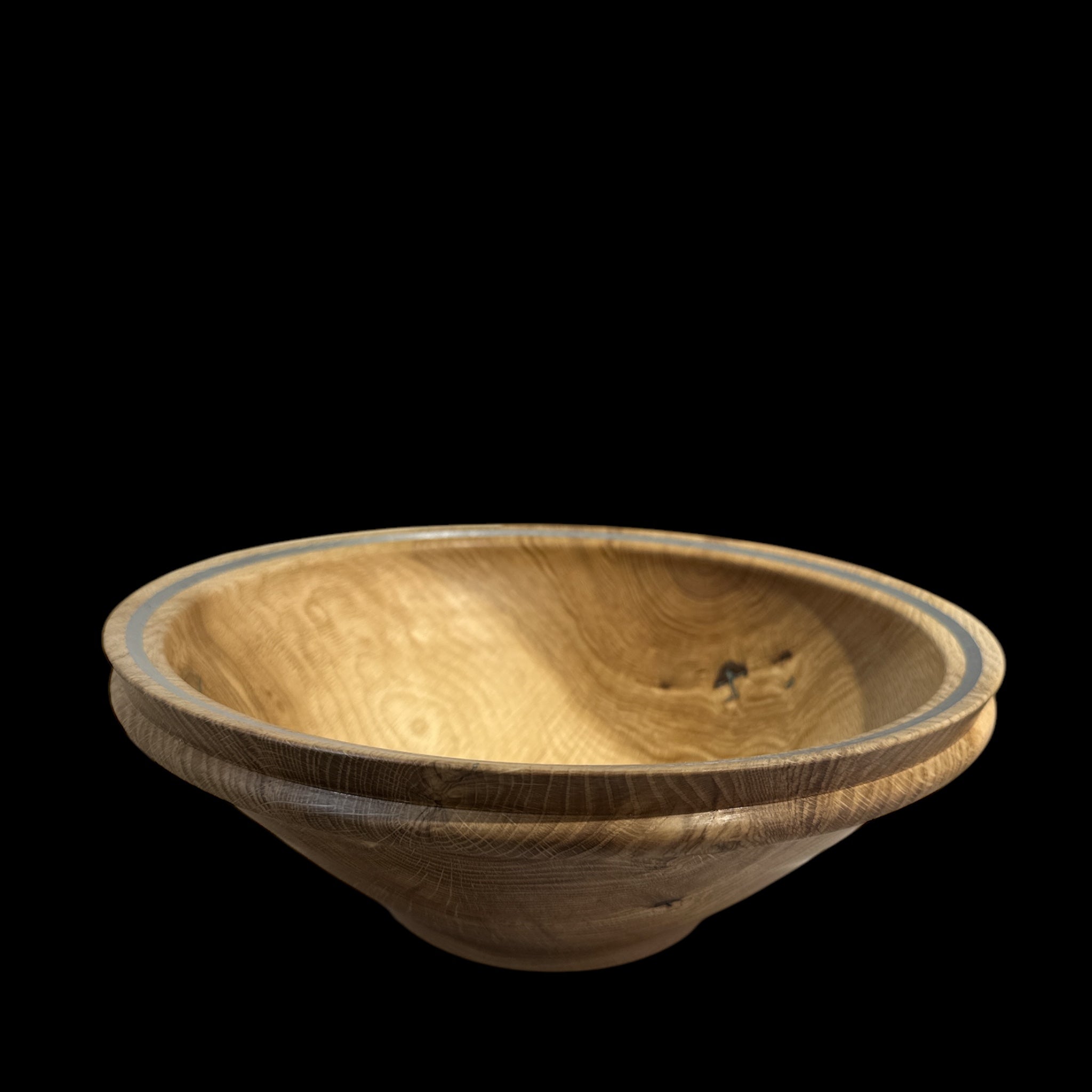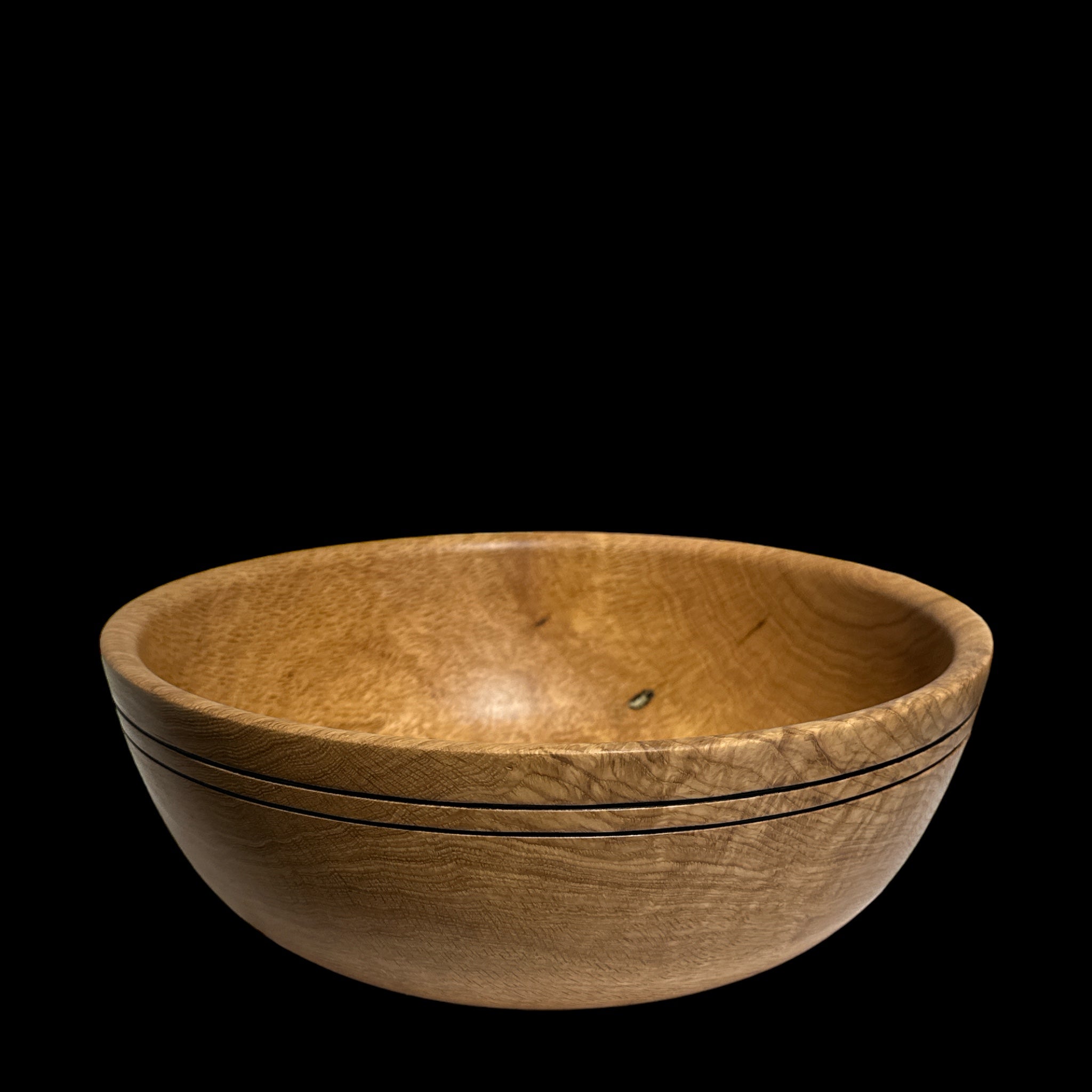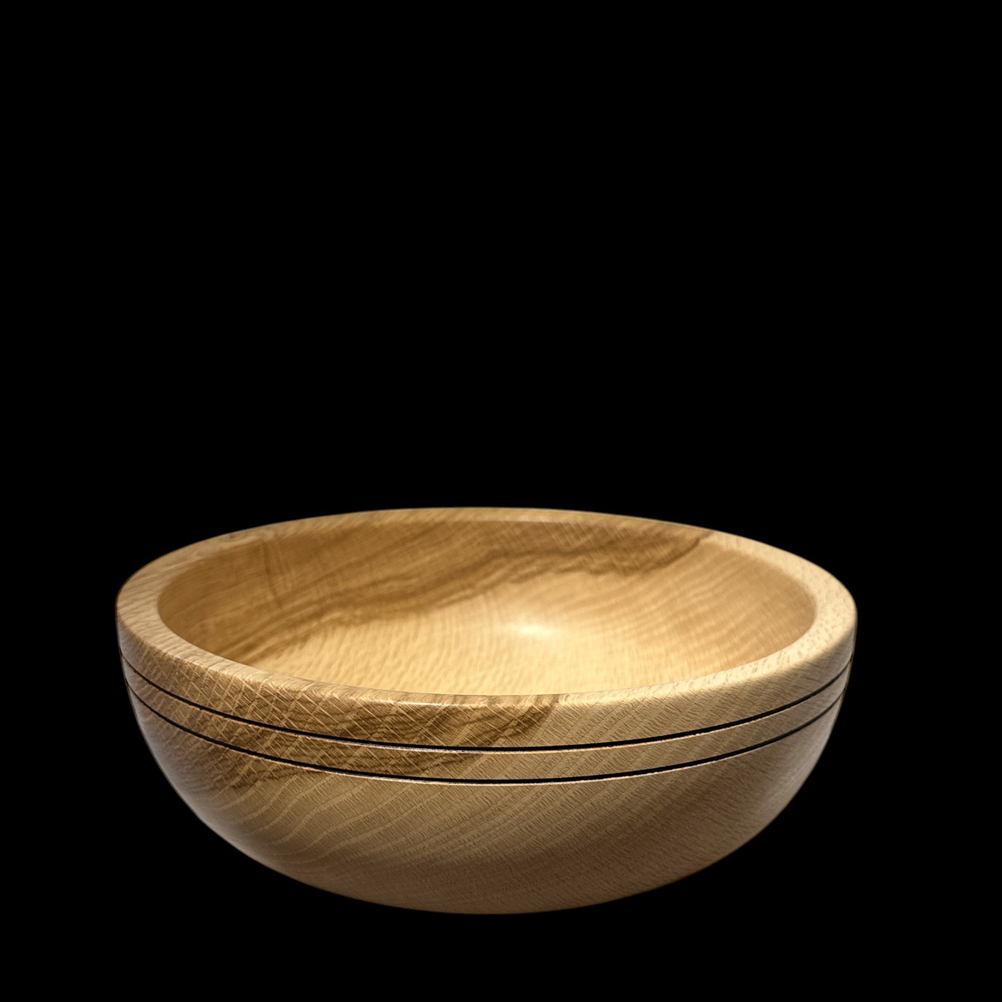 He works with all natural wood from the island such as oak, maple, locust,Arbutus, cherry,etc. Someone has a downed tree or wants their apple tree removed, Harvey is there to pick it up and turn it on his lathe. Before he can turn it he has to run it through a bandsaw and carve out something to work with. Then the wood goes into a drying room for up to one year.