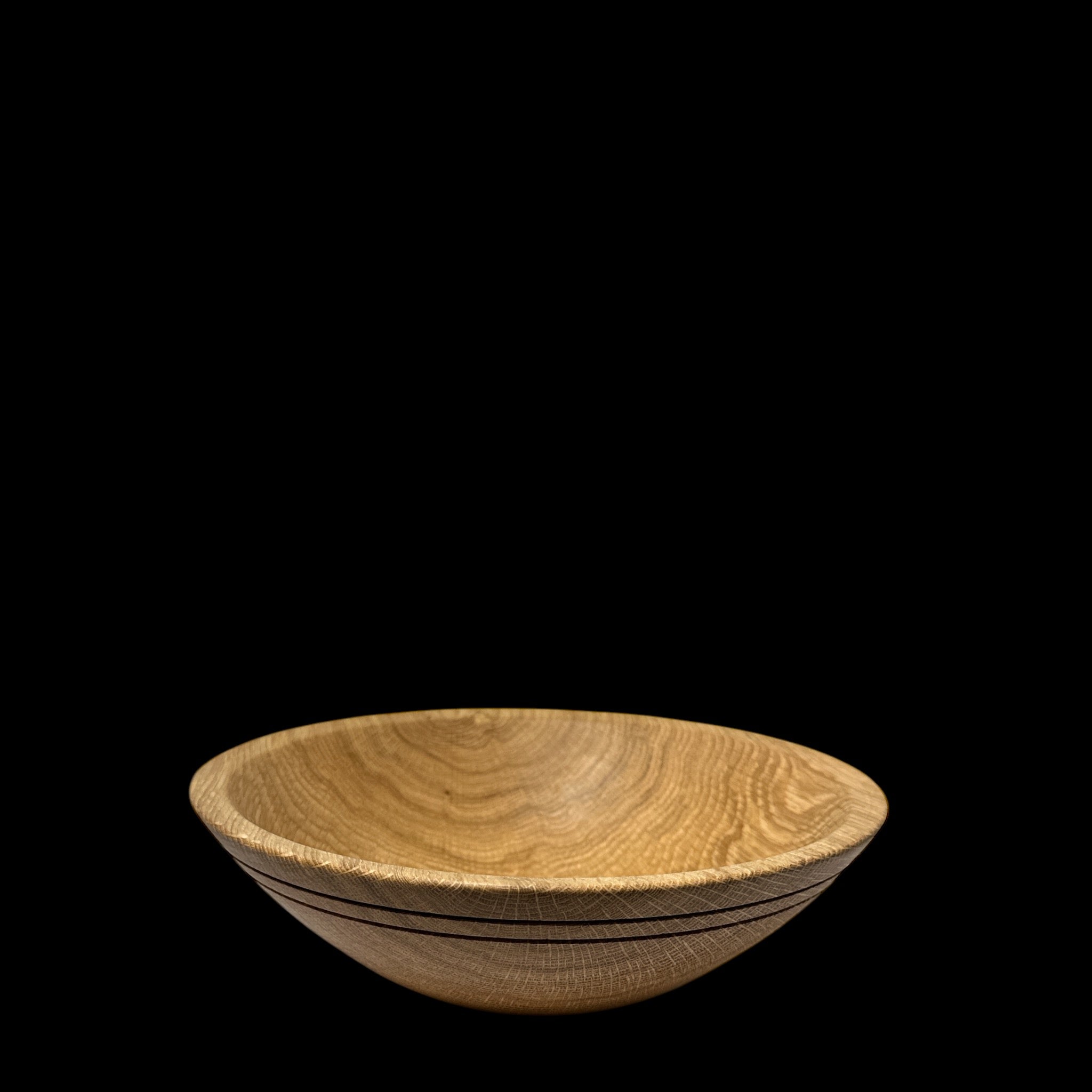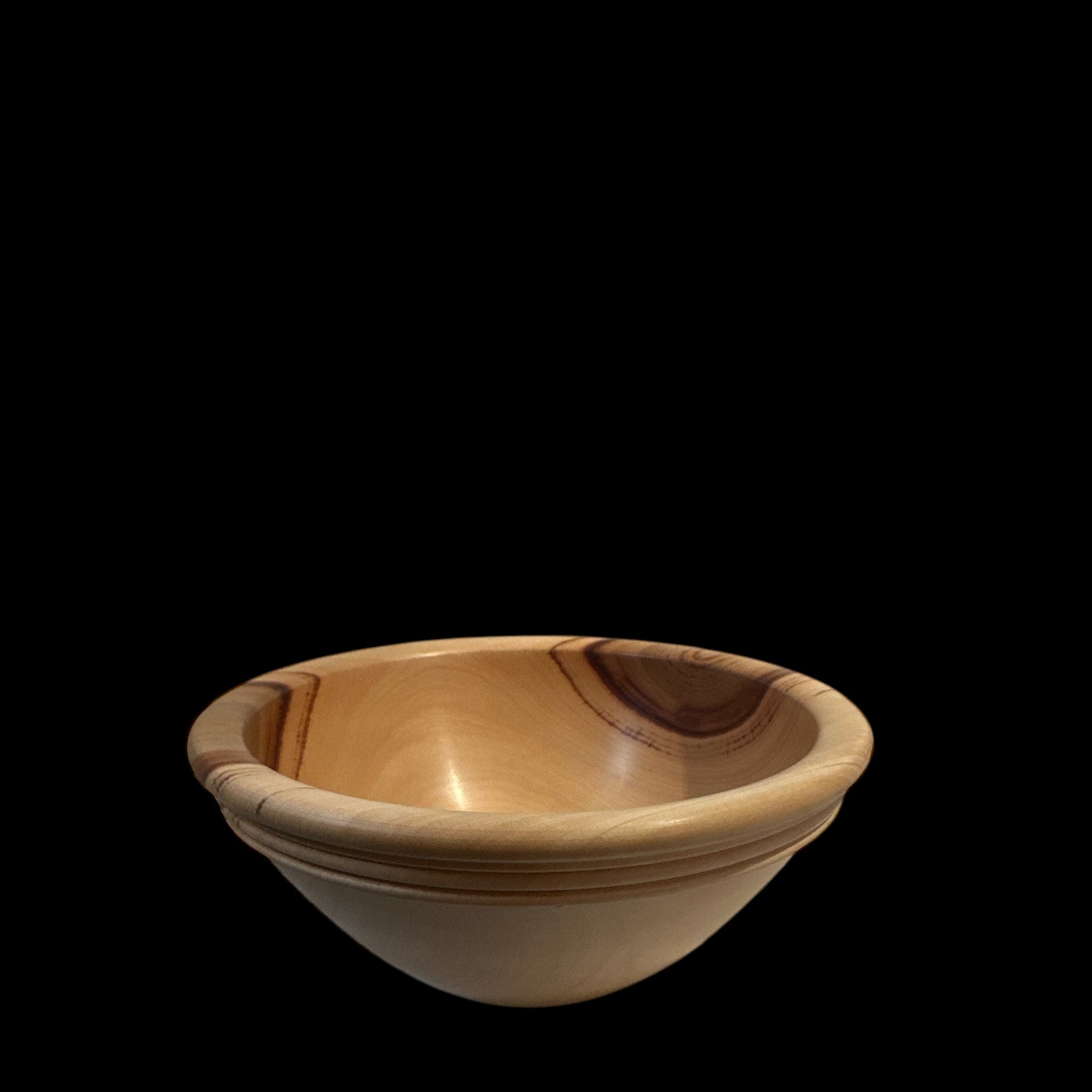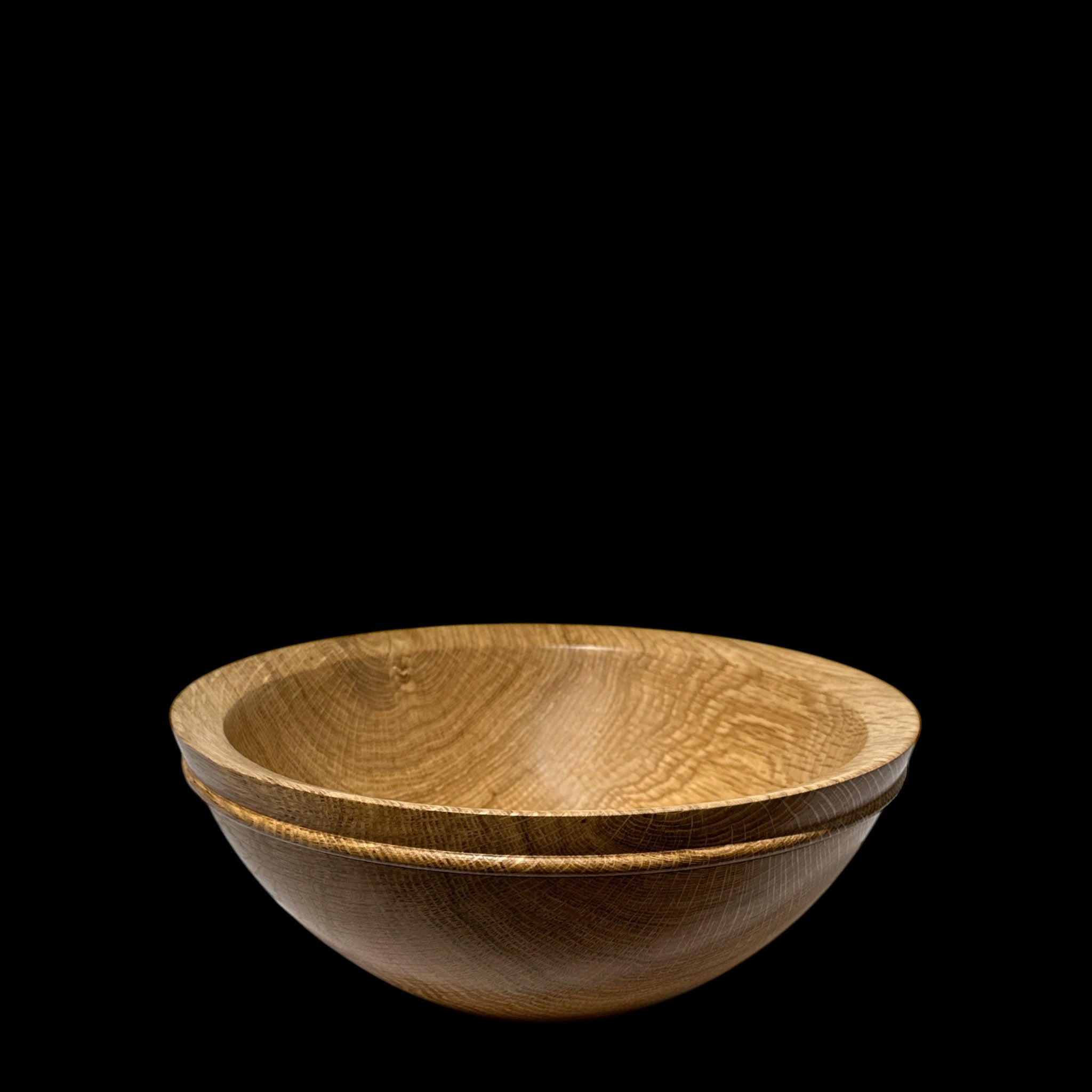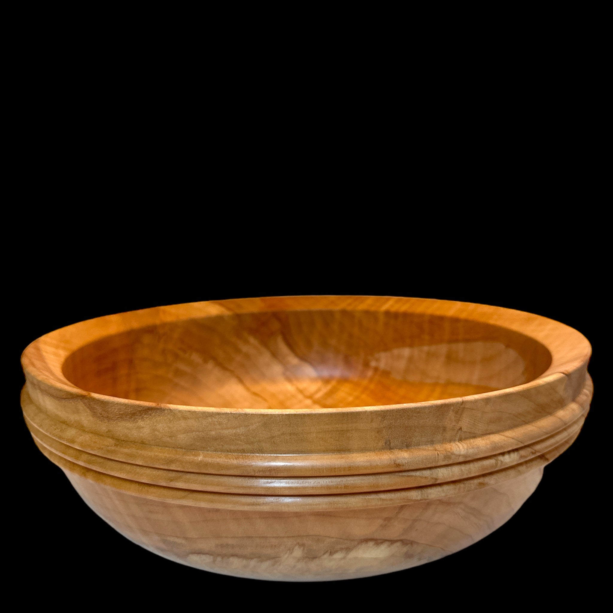 He works with all natural wood from the island such as oak, maple, locust,Arbutus, cherry,etc. Someone has a downed tree or wants their apple tree removed, Harvey is there to pick it up and turn it on his lathe. Before he can turn it he has to run it through a bandsaw and carve out something to work with. Then the wood goes into a drying room for up to one year.