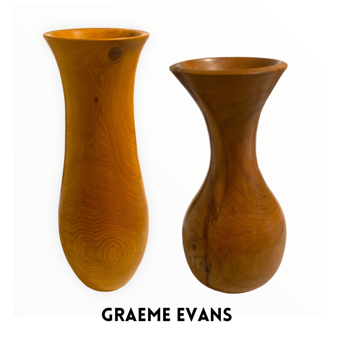 Decorative wooden vases hand turned by Graeme Evans using local wood.